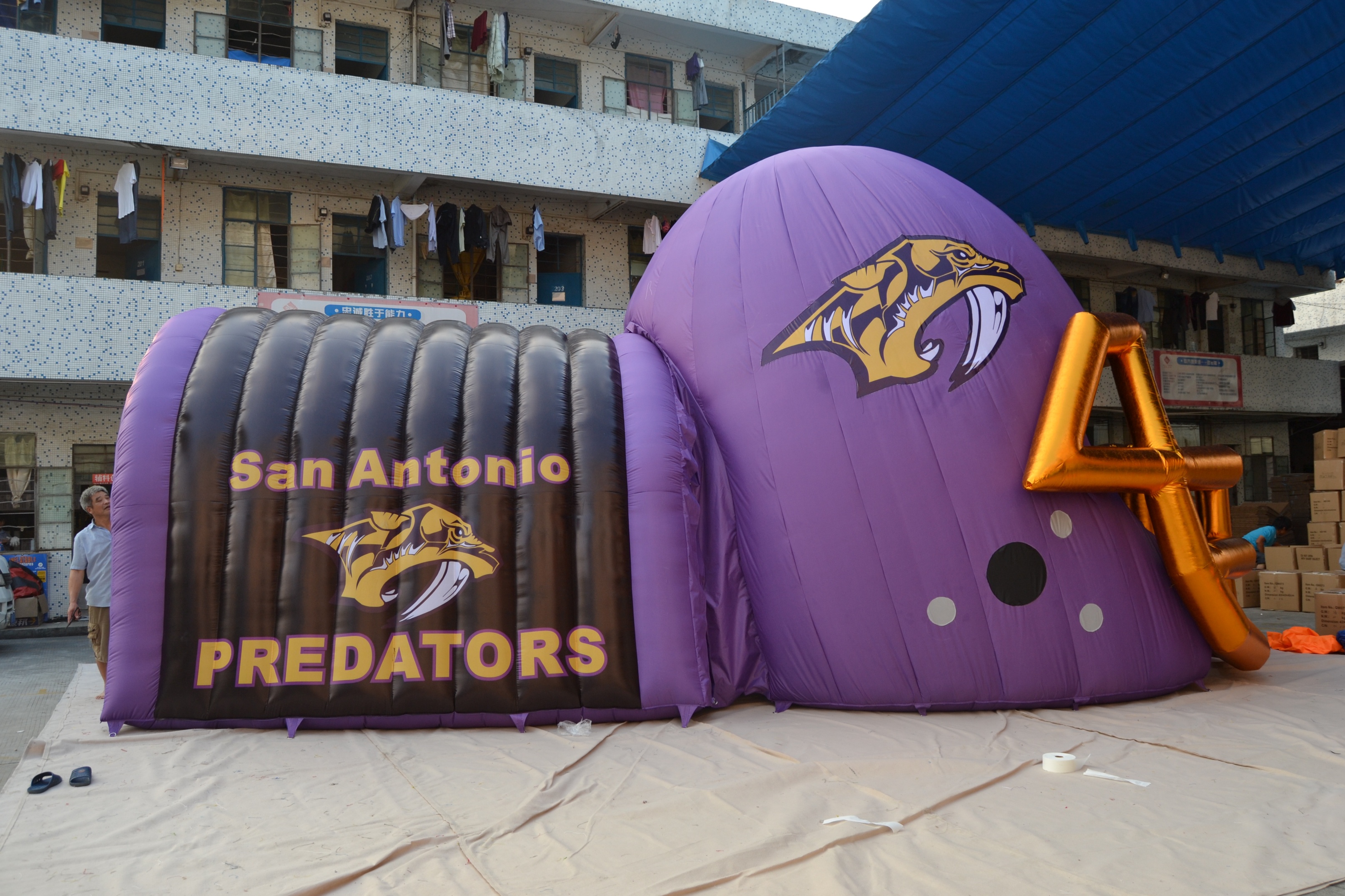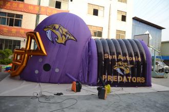 Inflatable helmet tunnel Name:Inflatable helmet tunnel style:cx15-17 size:10m fabric:pvc tarpaulin blower:CE/UL blower Inquire